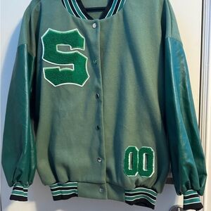Green varsity jacket, worn like once or twice.
