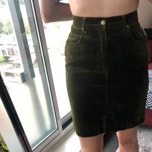 This is a gorgeous saturated dark green velvet skirt from Italian designer Rocco Barocco.