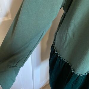 Green Velvet Teal Tier Zip Up Hooded Sweatshirt Style Top- Sz-2XL