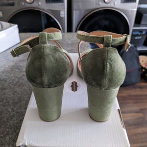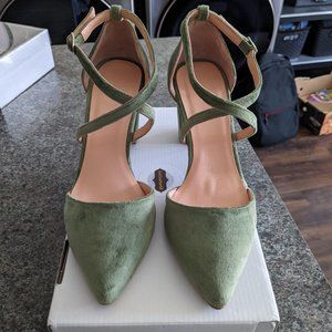 Green Velvet Wedding Heels - Bridal shoes, block heels, green velvet heels