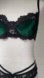 This elegant lingerie set features a stunning combination of black lace and deep green velvet corduroy fabric, offering a sophisticated and alluring look. Perfect for adding a touch of luxury to your intimate wear collection.