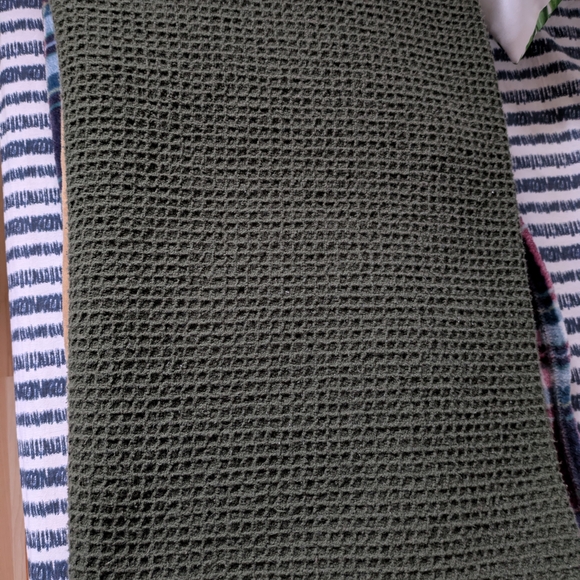 Cozy green waffle knit blanket. Perfect for adding warmth and texture to any space. size 51" x54"