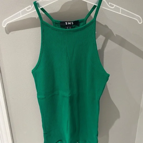 Streamlined and sophisticated, this SWS ribbed tank features a modern high neckline and a flattering slim fit. The stunning green hue adds a feminine touch to this versatile wardrobe essential. Made with quality ribbed fabric for lasting comfort and style.