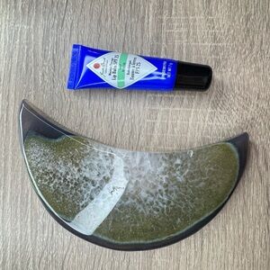 Elegant crescent-shaped glass decor in green and black. Perfect for modern interiors.