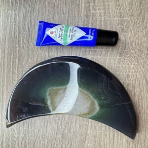 Green and Black Agate Crescent Moon Crystal Decor