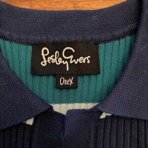 Cute fitted sweater with fun collar. Green and blue stripes. EUC. Tagged One X.