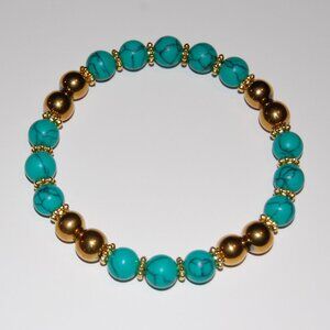 Green and Gold Bracelet,Green Howlite and Golden 8mm Beads