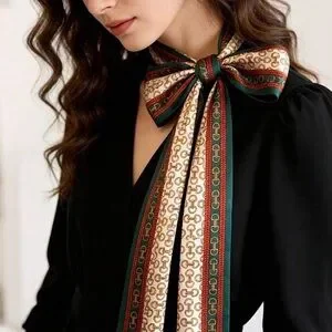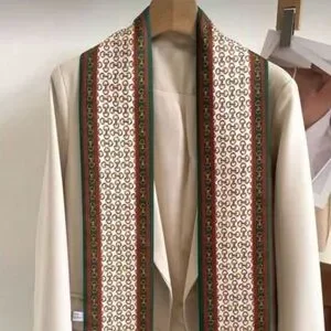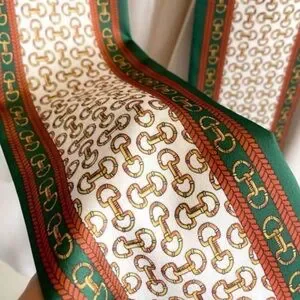 Elegant scarf with green and gold pattern. Perfect for adding a touch of luxury to any outfit.