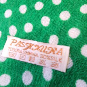 Green and White Polka Dot Scarf Long Rectangular Pashmina