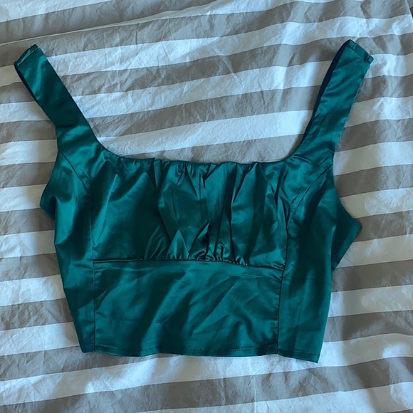 Satin green top size medium zip back half way up never worn