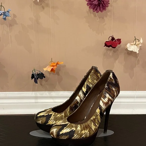 Gently used: Green pattern platform pumps (Aldo, size 38)