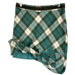 Green plaid straight skirt with flower applique velvet detail size 6 Jacob