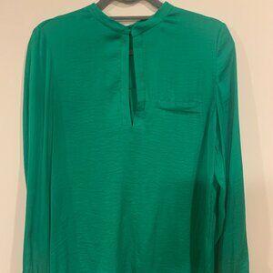 Green long sleeve satin top with v-neck from Zara. Button and loop to tie the neck. Excellent condition.