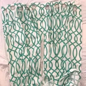 Like “Brand New”, never used green & white patterned long curtain panels (2 pieces)… 40”x84”