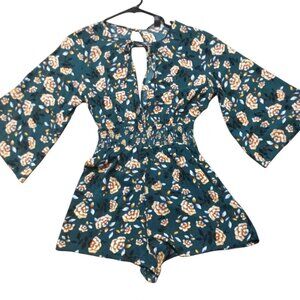 Green with Flowers Romper, Tie on Back, Elastic on Waist