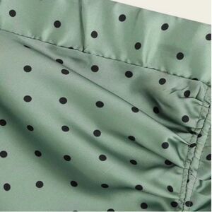 High waisted Olive green polka dot skirt with thigh high ruched split.