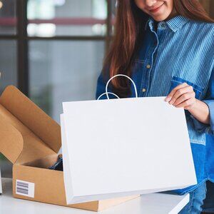 Perfect for gifts, retail shopping, events, weddings, parties, event giveaways, and promotional activities, these white kraft paper bags adapt to a wide range of needs and occasions.