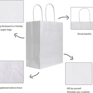 Perfect for gifts, retail shopping, events, weddings, parties, event giveaways, and promotional activities, these white kraft paper bags adapt to a wide range of needs and occasions.