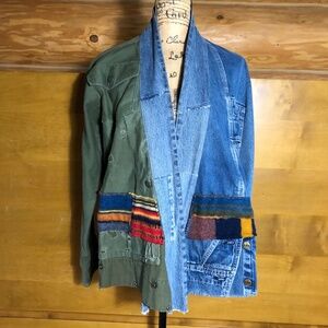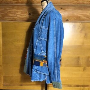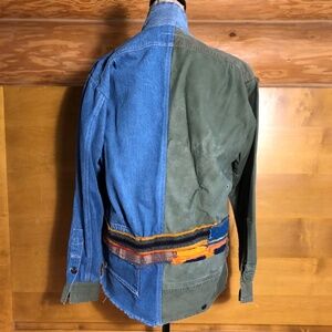 I love this piece! Compliments everywhere you go guaranteed. Unisex jacket, size M for ladies and S for men. Greg Lauren is a patchwork master. This kimono style is his signature favourite. These jacket run $$$ (even used). I have had this one for a long time, and it hasn't lost its value. I don't really wear it anymore, so it is yours to grab. This is a fabulous deal on a very original piece, they are all slightly different. Pit to pit measurement is 22 inches (laying flat) and it is 32 inches from the very top to the very bottom. Last pic is for the look (so cool!) and the 2nd to last is a vintage one currently on sale @ Ffetch. WOW right!?