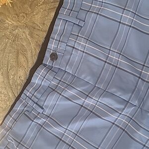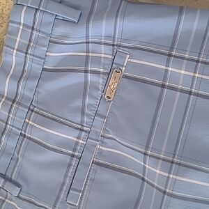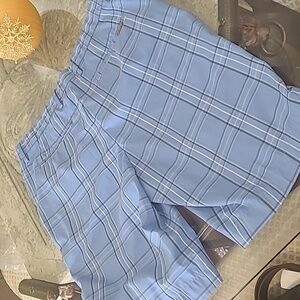 Great condition flat front shorts waist 34 inseam 9 opening 8 inches plaid design great condition small cut at the front hard to see.