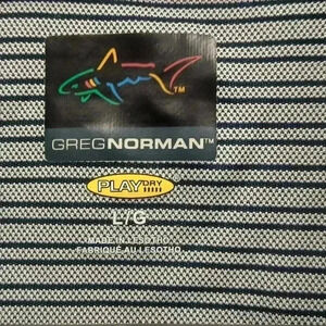 Greg Norman Polo Golf Shirt Mens Large Grey Black Stripe Sportswear