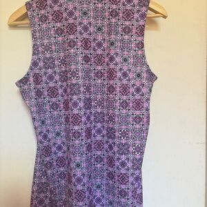 The Greg Norman Women's Sleeveless ML75 Play Dry Golf Shirt in Iris is a stylish and functional piece of golf apparel designed for women. Made from 100% polyester with a medium fabric wash, this shirt features a zip closure and a regular fit. Perfect for golfing activities, the shirt is machine washable for easy care and maintenance. The sleeveless design and polo style offer a comfortable and flattering look for female golfers looking for performance and style on the course. New without tags
