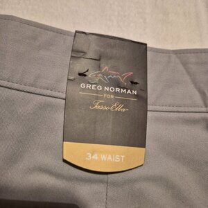 Greg Norman men's size 34 silver shorts NWT, 6 pocket pants, leg pockets zipper