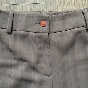 Chic brown pinstripe trousers. Ideal for versatile styling.