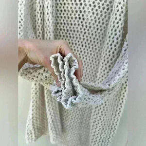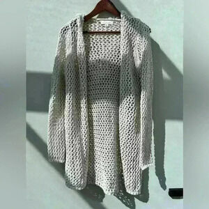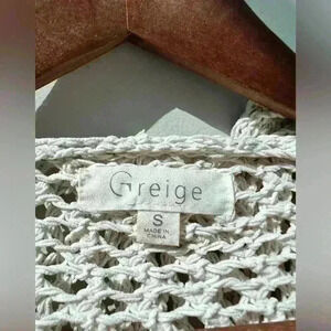 Greige Womens Crochet Knit Open Hoodie Beach Casual Cover Up Sweater Small