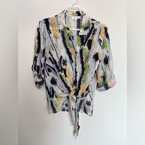 Elevate your style with this chic tie-front blouse featuring an abstract print. Perfect for any occasion. Size XS EUC