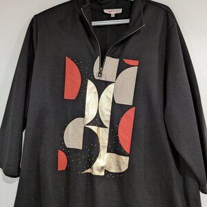 Grenier Half Zip 3/4 Sleeve Top Black Coral Gold Size XL Condition: excellent