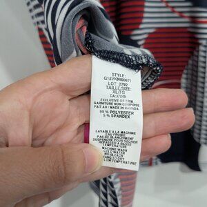 Grenier Short Sleeve Stretch Top Navy Blue White Red Size XL