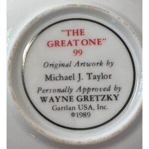 This collector plate features original artwork by Michael J. Taylor and is personally approved by Wayne Gretzky. It offers a unique opportunity for hockey enthusiasts to own a piece of memorabilia dedicated to "The Great One." The plate's design captures iconic imagery, making it a valuable addition to any collection.
