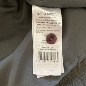 Vero Moda, grey, A-line midi skirt. Pretty violet buttons. Tag says size 34. I would say it’s about an XS. Fully lined. Purchased at Simons.