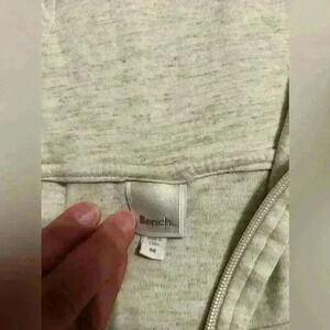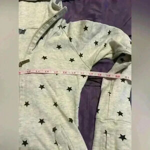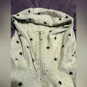 Grey ladies Bench zip up hoodie, cute black star pattern all over, thumb holes and front pockets fits on the smaller side