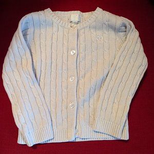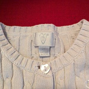 Adorable sweater with heart-shaped buttons. 100% cotton in excellent condition. Very light grey in colour.