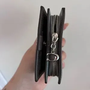 Grey wallet in almost perfect condition, some very slight discoloration on the metal work but is almost unnoticeable. Gorgeous brown leather interior with lots of card spaces. 😊