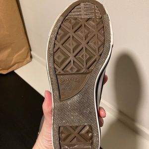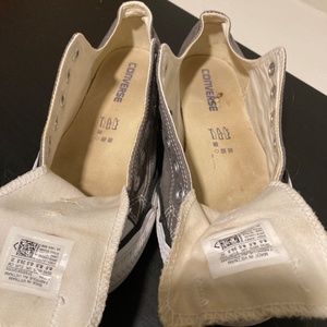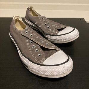 The classic low Chuck Taylor sneaker in grey. Worn less than 20 times. Does not come with laces.