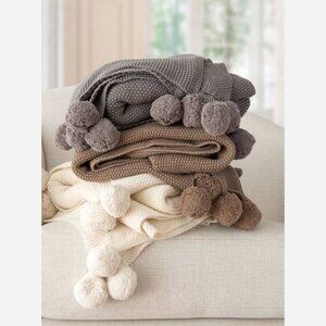 Grey Cotton Throw with Pompoms – 50" x 60" Cozy Season Blanket