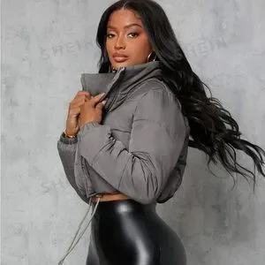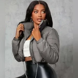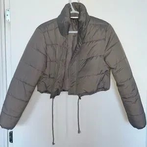 Grey cropped puffer coat