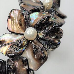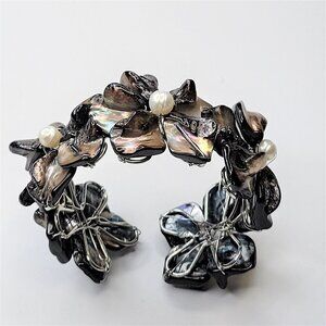 Pearl Floral Adjustable Cuff Bracelet Bangle