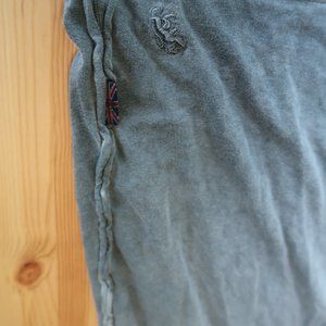 100% cotton grey Lion's Crest t-shirt with distressed colour look. There is raised fabric detailing on the shoulders and down the sides of the shirt
