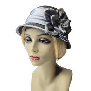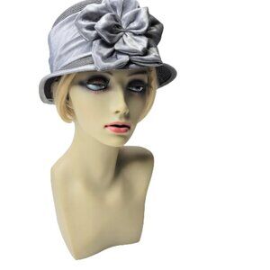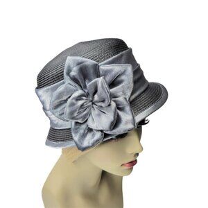 Grey Dress Hat Church Hat with Satin Flower Rosette One Size