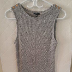 Grey dynamite tunic with side slits, and gold buttons. Size: Small. Only worn twice, in great condition!