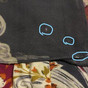 Grey floral printed stretch tank with attached silk poncho by Tiny (Anthropologie). Versatile piece as the poncho can be worn down over the tank or pushed back so it looks like a scarf or partially up as shown in the pictures.