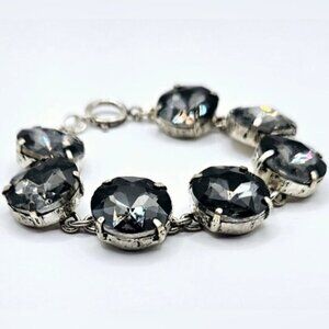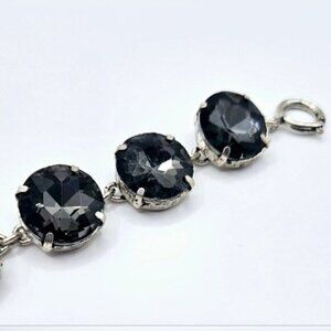 Grey Glass Crystal Button Dot Silvertone Bracelet.