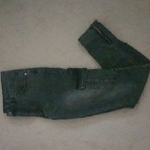 Lots of Pockets (Two on the thighs) Large but fits like a small Not stiff, it's got some strech Bottom of the pant legs has a zipper