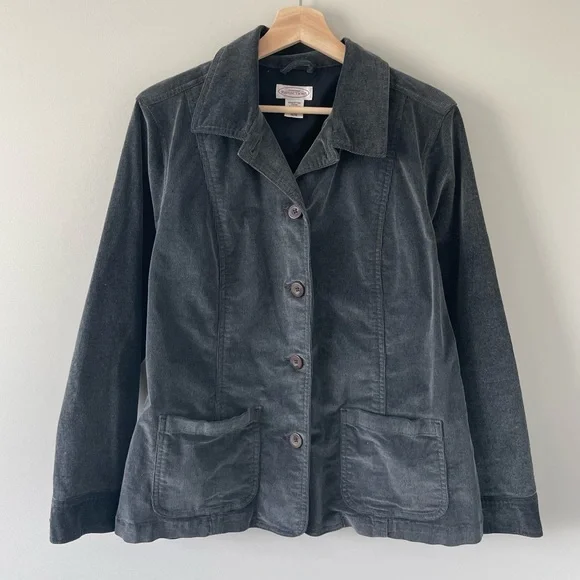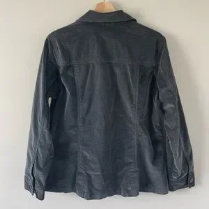 Soft Velvety/Suede-Like Material • Grey Jacket with Button Front • Front Pockets • Stretchy Material