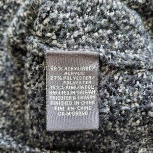 This cozy, two shades of grey cardigan is a perfect addition to a winter wardrobe. It features 9 buttons along the front and measures approximately 32" from the top of the buttoned up cardigan to the bottom. Vertical line detail at the waist. Fold down collar. Mild piling in spots but still has lots of life left. Size XS.