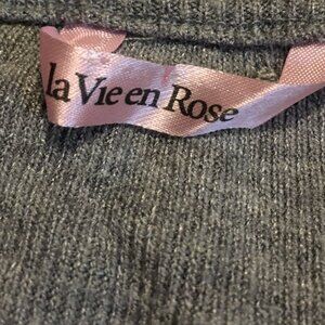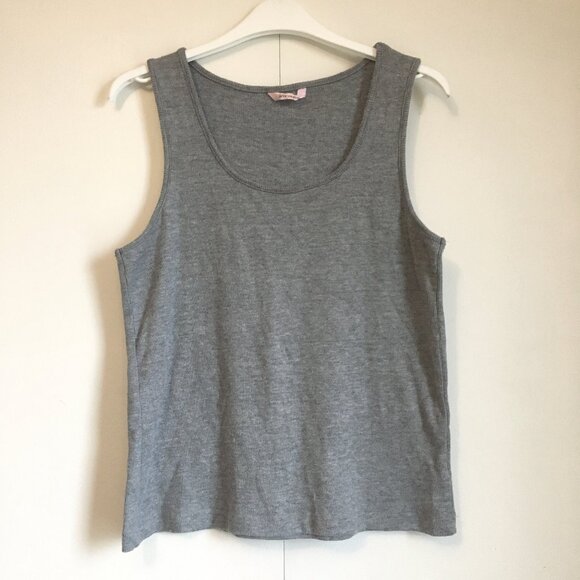 Very good preowned condition grey, knit tank top by La Vie En Rose. Perfect for lounging around or sleepwear. There is some white strands woven in for a slightly heathered look. Designed in Canada.